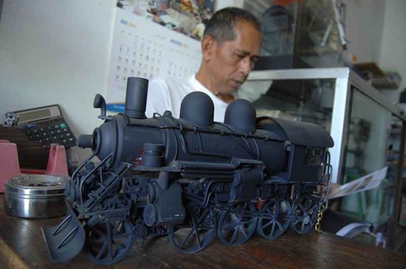 Kerajinan Miniatur Lokomotif – Banyak orang sering memanggilnya, Pak Sulkan, dia adalah seorang kakek yang tinggal di Malang, Jawa Timur. Kurang lebih 2 minggu waktu yang dibutuhkan untuk menghasilkan miniatur kereta pertamanya. Nyaris mirip dengan miniatur lokomotif bermerek Sugarpine Railroad Engine dari Amerika Serikat.