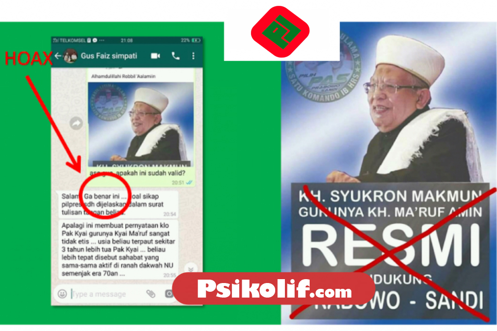 Baca juga : Hoax Guru Kyai Ma’ruf Dukung Prabowo Sandi, Berikut Klarifikasinya